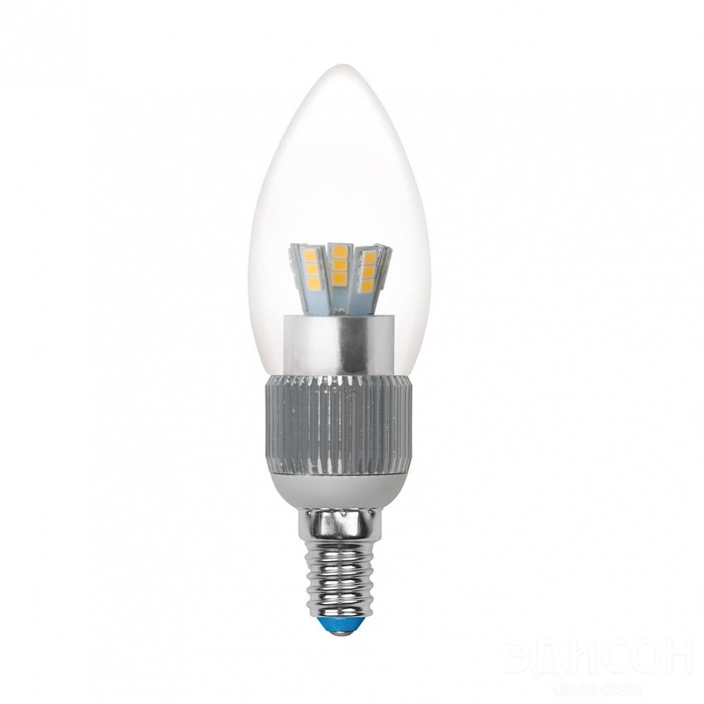 Лампа светодиодная диммируемая Uniel E14 5W 3000K свеча прозрачная LED-C37P-5W/WW/E14/CL/DIM 08745 — купить в интернет-магазине Влюстре по цене 478 ₽ руб. с доставкой по Москве, Московской области и по всей России.