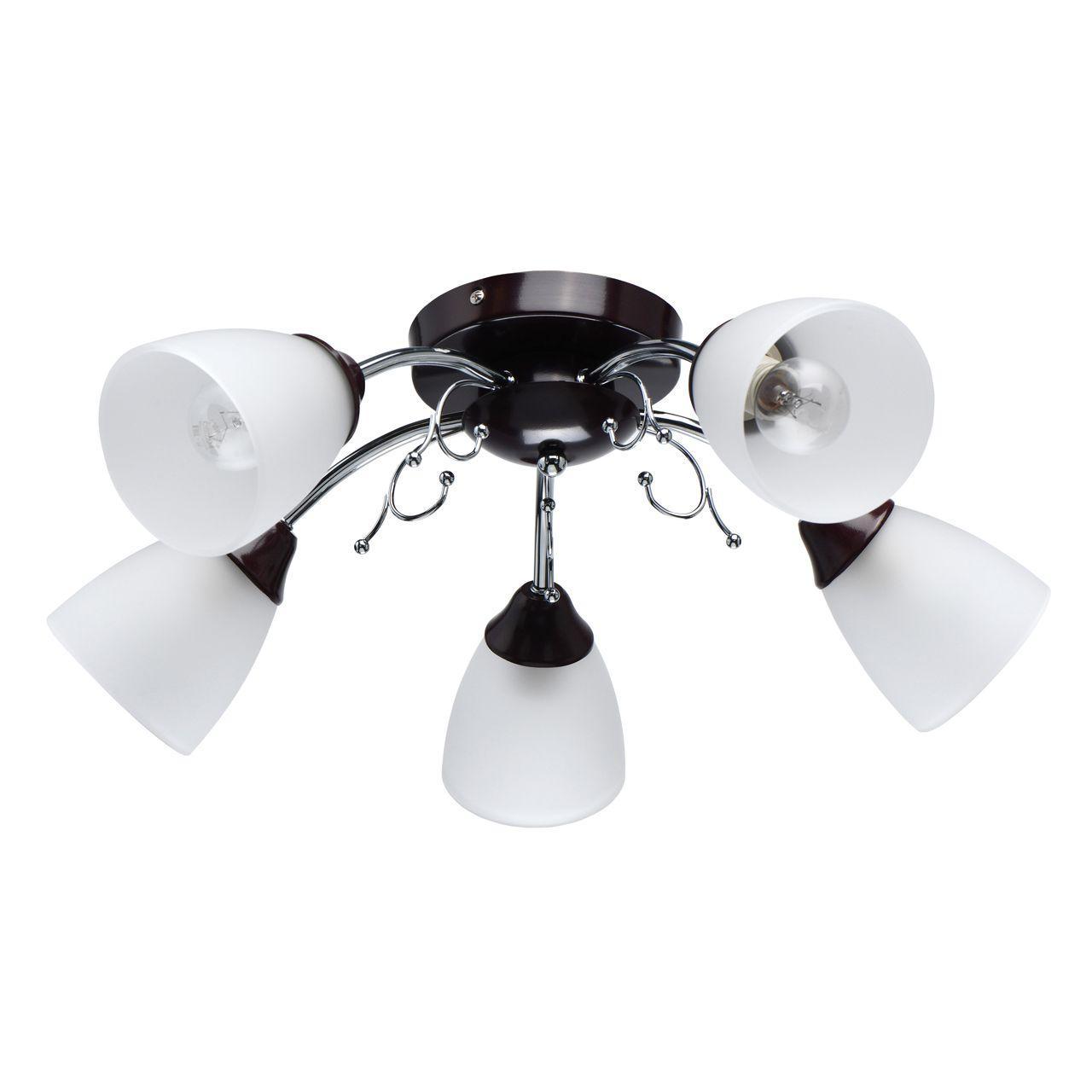 Потолочная люстра De Markt City Нежность 676015005 из серии Нежность от немецкого бренда De Markt будет роскошно смотреться в интерьере прихожей в стиле модерн. У люстры 5 ламп. Для De Markt 676015005 подойдут лампы накаливания с цоколем E14, а общая мощность 200 Вт позволяет осветить площадь до 10 м². Арматура выполнена из металла цвета венге, а плафоны из стекла белого цвета. Размеры модели 170 мм, диаметр 520 мм. Размеры упаковки (ДxШxВ): 24x24x29 см. Регулярные предложения в интернет-магазине «Влюстре».