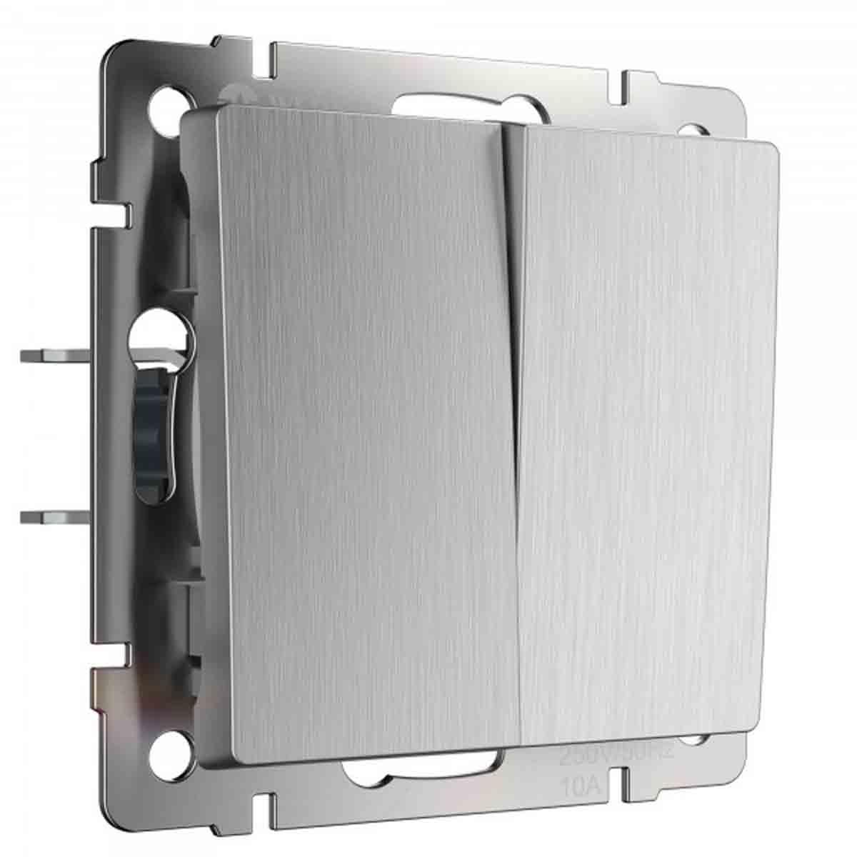 Выключатель двухклавишный Werkel (cеребряный рифленый) W1122009 4690389159626 — купить в интернет-магазине Влюстре по цене 720 ₽ руб. с доставкой по Москве, Московской области и по всей России.