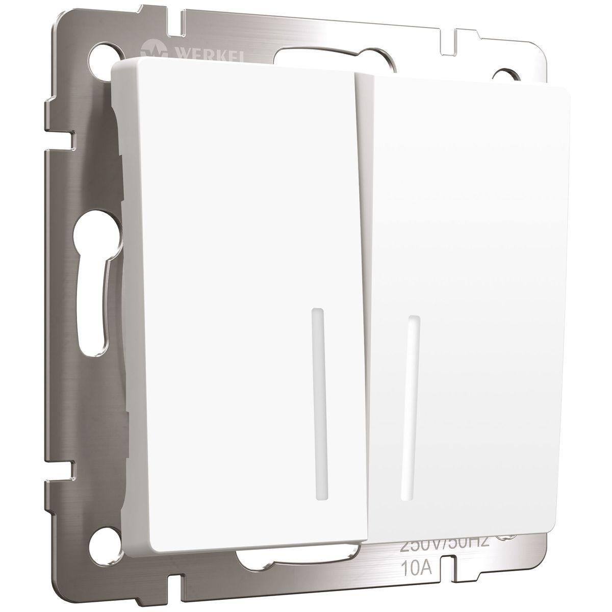 Выключатель двухклавишный Werkel с подсветкой белый матовый W1120161 4690389184666 — купить в интернет-магазине Влюстре по цене 1 011 ₽ руб. с доставкой по Москве, Московской области и по всей России.