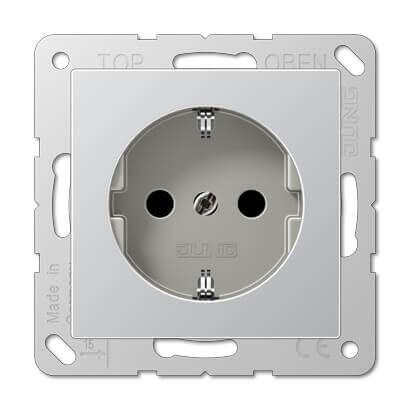 Розетка с заземлением безвинтовой зажим Jung A 500 алюминий A520AL — купить в интернет-магазине Влюстре с доставкой по Москве, Московской области и по всей России.