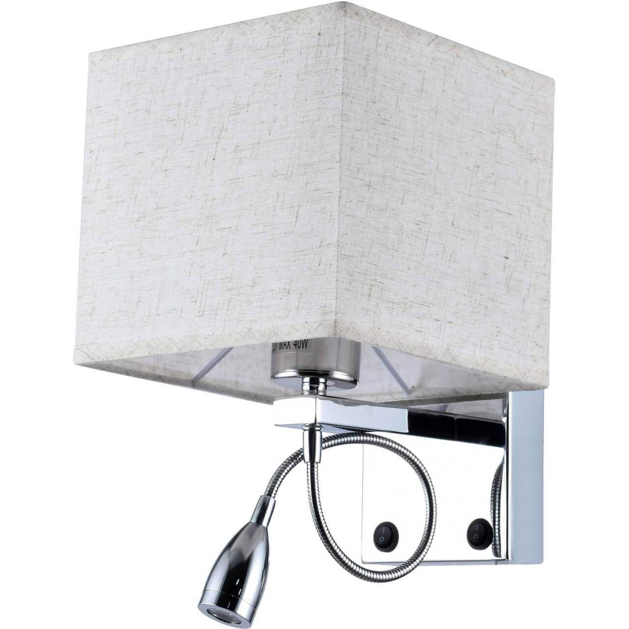 Бра Stilfort Duo 2064/01/02W из серии Duo от немецкого производителя Stilfort будет прекрасно смотреться в интерьере спальни в стиле модерн. У бра 1 лампа, управляется при помощи выключателя. Для Stilfort 2064/01/02W подойдут лампы накаливания или светодиодные лампы с цоколем E27, а общая мощность освещения 40 W. Арматура выполнена из металла с хромированной поверхностью из ткани бежевого цвета. Размеры модели 260x170x170 мм. Размеры упаковки (ДxШxВ): 18x18x20 см. Регулярные акции в онлайн-магазине «Влюстре».