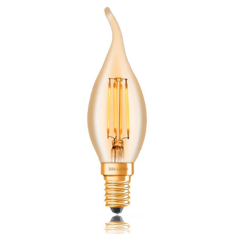 Лампа светодиодная филаментная диммируемая E14 4W 2200K золотая 057-349 — купить в интернет-магазине Влюстре с доставкой по Москве, Московской области и по всей России.