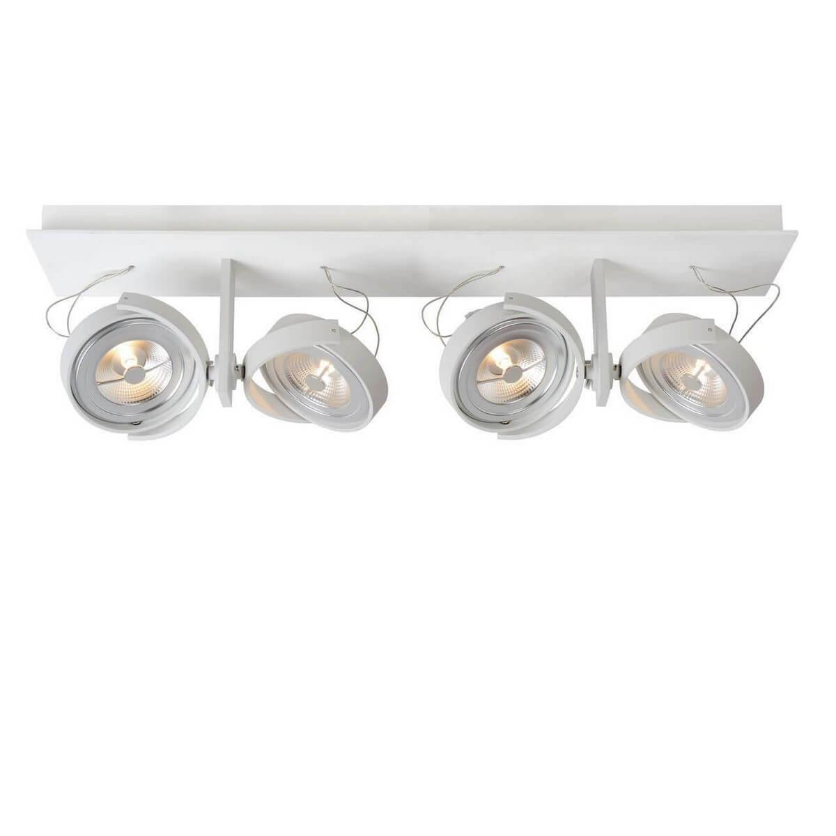 Светодиодный спот Lucide Spectrum Led 09988/48/31 из серии Spectrum Led White от бельгийского производителя Lucide будет прекрасно смотреться в интерьере магазина в стиле хай-тек. У модели 4 лампы, управляемые при помощи выключателя света. Для Lucide 09988/48/31 подойдут светодиодные лампы с цоколем AR111 (лампочки идут в комплекте), а общая мощность освещения 48 W позволяет осветить площадь до 24 м². Арматура выполнена из металла белого цвета, а плафоны из металла белого цвета. Размеры модели 670x140x134 мм.. Размеры упаковки (ДxШxВ): 68x15x15 см. Регулярные цены в магазине «Влюстре».