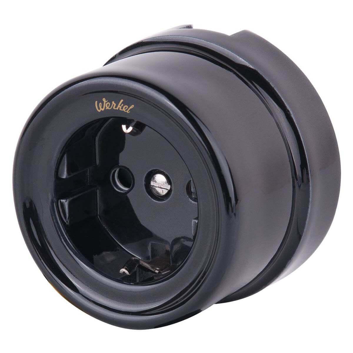 Розетка с заземлением Werkel Ретро черный W5671008 4690389166808 — купить в интернет-магазине Влюстре по цене 2 267 ₽ руб. с доставкой по Москве, Московской области и по всей России.