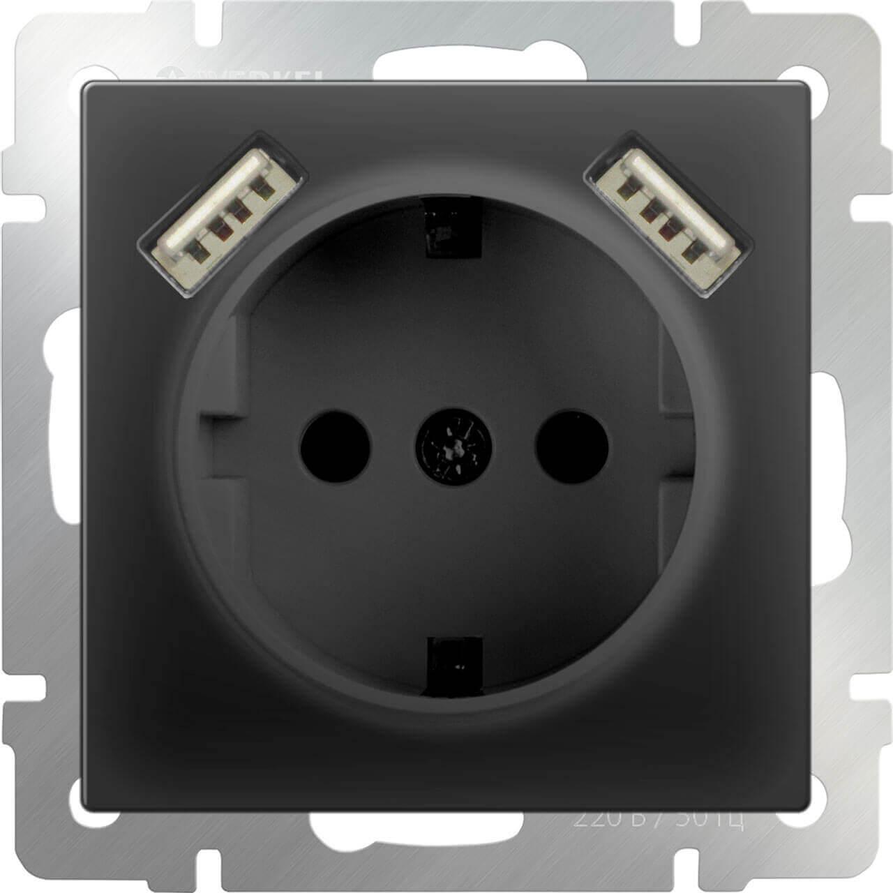 Розетка Werkel с заземлением, шторками и USBx2 черный матовый WL08-SKGS-USBx2-IP20 4690389073236 — купить в интернет-магазине Влюстре с доставкой по Москве, Московской области и по всей России.