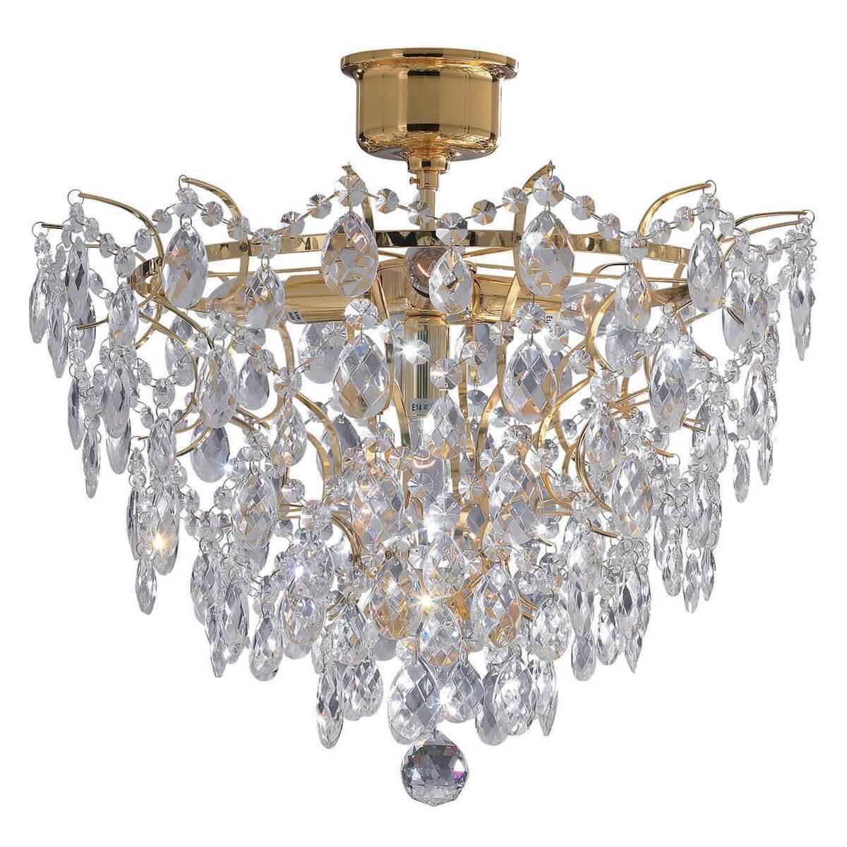 Потолочная люстра Markslojd Rosendal 100510 из серии Rosendal от шведского производителя Markslojd будет отменно смотреться в интерьере спальни в классическом стиле. У люстры 4 лампы. Для Markslojd 100510 подойдут лампы накаливания с цоколем E14, а общая мощность 160 W позволяет осветить площадь до 8,9 м². Арматура выполнена из металла золотистого цвета, а плафоны из хрусталя. Размеры модели 420 мм, диаметр 480 мм. Размеры упаковки (ДxШxВ): 48x48x36 см. Регулярные скидки в магазине «Влюстре».